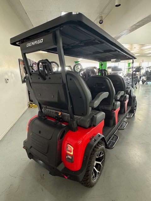 Introducing the 2025 Denago EV Rover XXL: the ultimate electric golf cart that masterfully blends innovation, comfort, and style. This brand-new model is perfect for those seeking an eco-friendly yet powerful solution for traversing golf courses, gated communities, or large estates with ease and flair. The Denago EV Rover XXL stands out with its sleek, modern design that is both eye-catching and functional. Its aerodynamic body is crafted to enhance performance while maintaining a sophisticated appearance. As an electric vehicle, the Rover XXL takes pride in its zero-emissions operation, offering a sustainable option for environmentally conscious drivers. Designed to accommodate up to six passengers, the spacious interior of the Rover XXL ensures that every ride is comfortable and enjoyable. Plush seating and ample legroom allow for a relaxed journey, whether you’re heading to the next hole on the golf course or simply going for a scenic drive. The intuitive, user-friendly dashboard provides easy access to all controls, making it a breeze to navigate. The Rover XXL is powered by a robust electric motor that delivers a smooth and quiet ride, with impressive torque to tackle inclines and various terrains effortlessly. Its advanced battery system ensures an extended range, allowing you to explore further without the need for frequent recharges. Safety is a top priority with the Denago EV Rover XXL. Equipped with a comprehensive suite of safety features, including seat belts for all passengers, LED headlights for improved visibility, and sturdy construction for enhanced durability, this golf cart is designed to keep you and your passengers secure at all times. This new 2025 Denago EV Rover XXL is more than just a golf cart—it’s a statement of luxury and sustainability. Experience the future of personal transport today with this cutting-edge electric vehicle. Whether you’re a golf enthusiast or simply enjoy leisurely drives, the Rover XXL is ready to elevate your adventures.