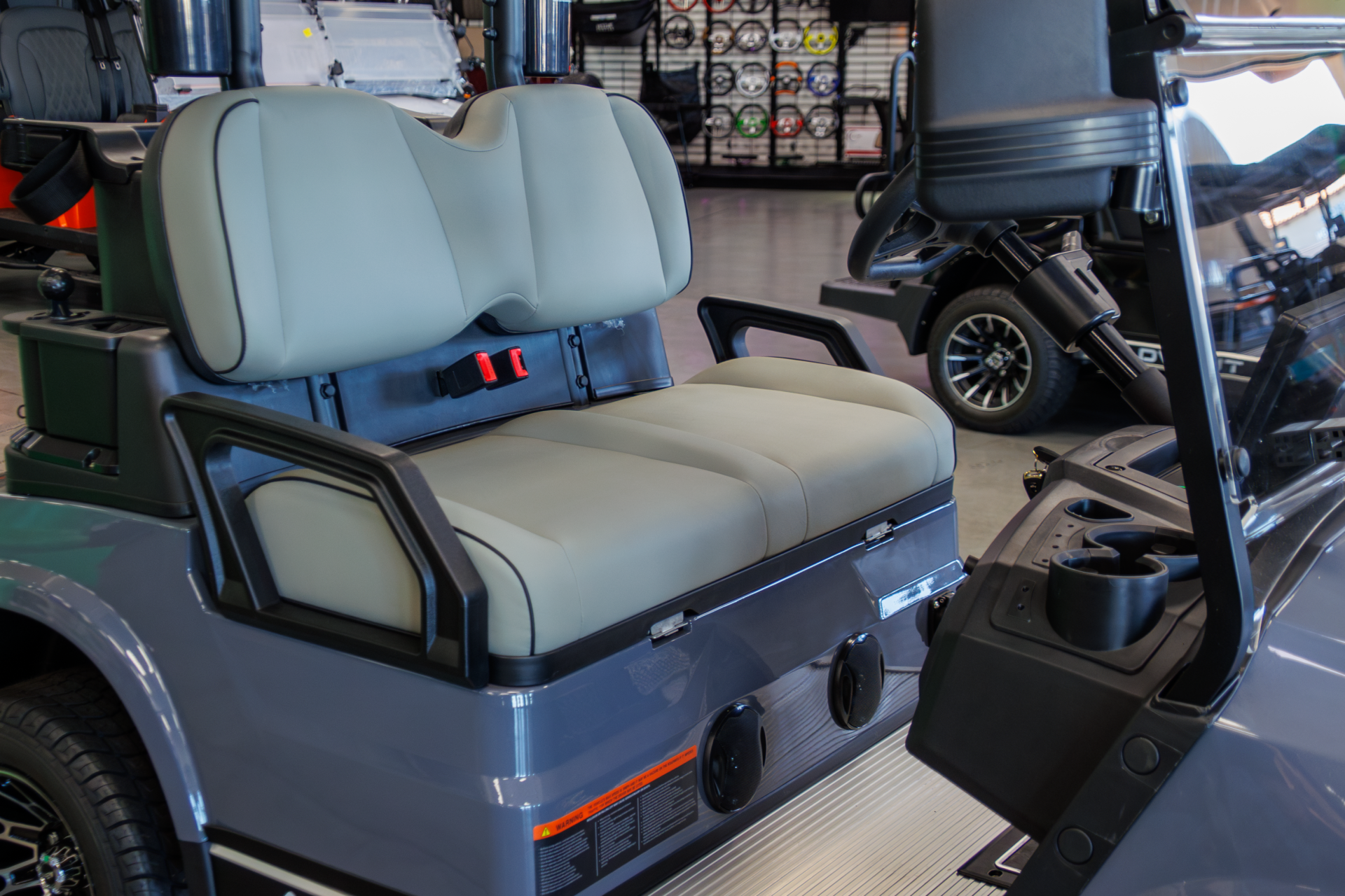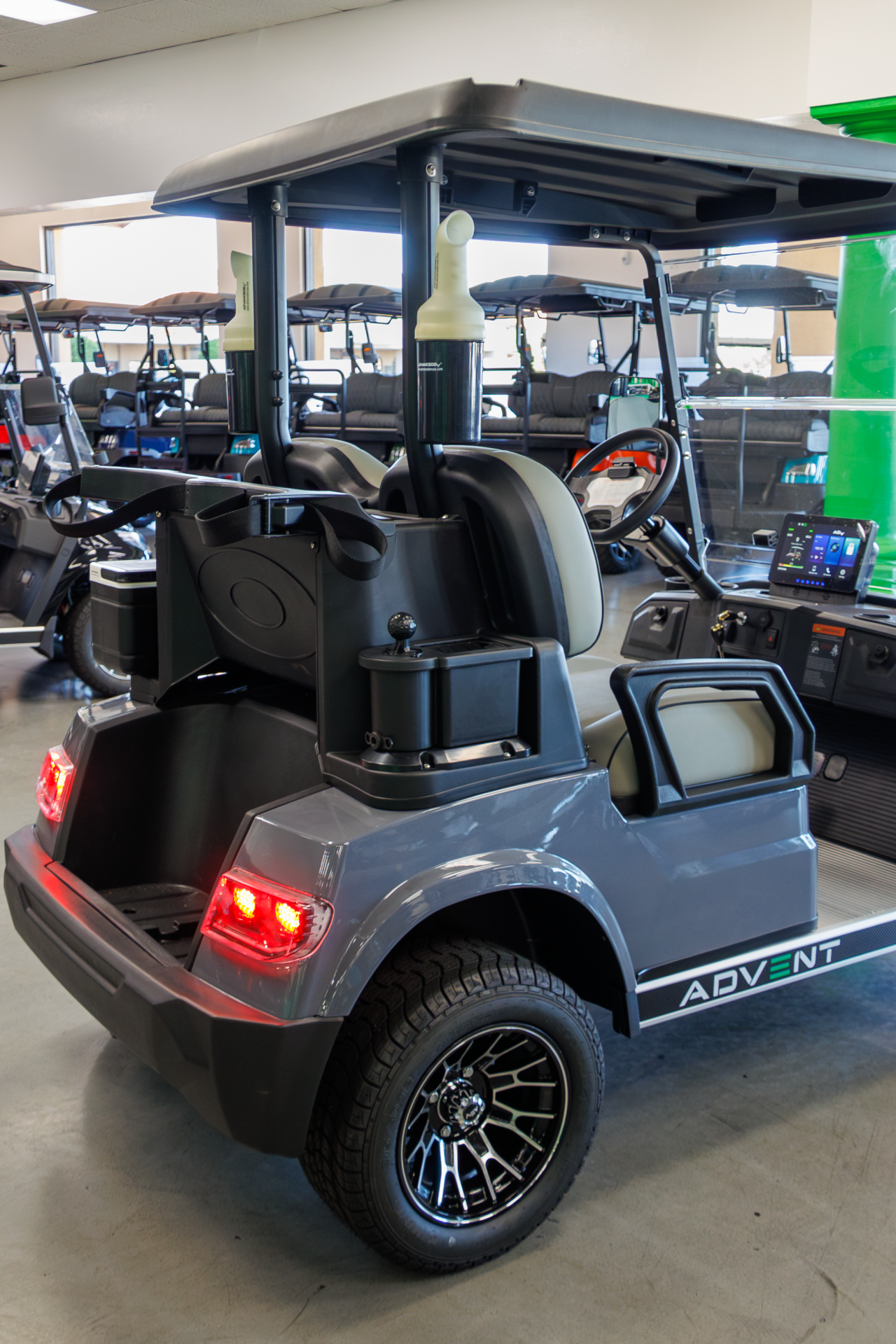 Built with durability and driver confidence in mind, the Advent 2 features four-wheel hydraulic disc brakes, independent front suspension, and bright LED lighting for dependable handling and visibility. Inside, premium touches like custom-stitched leather seating, a Bluetooth touchscreen display, backup camera, and integrated sound system create a comfortable, easy-to-enjoy driving experience in a compact electric vehicle platform.