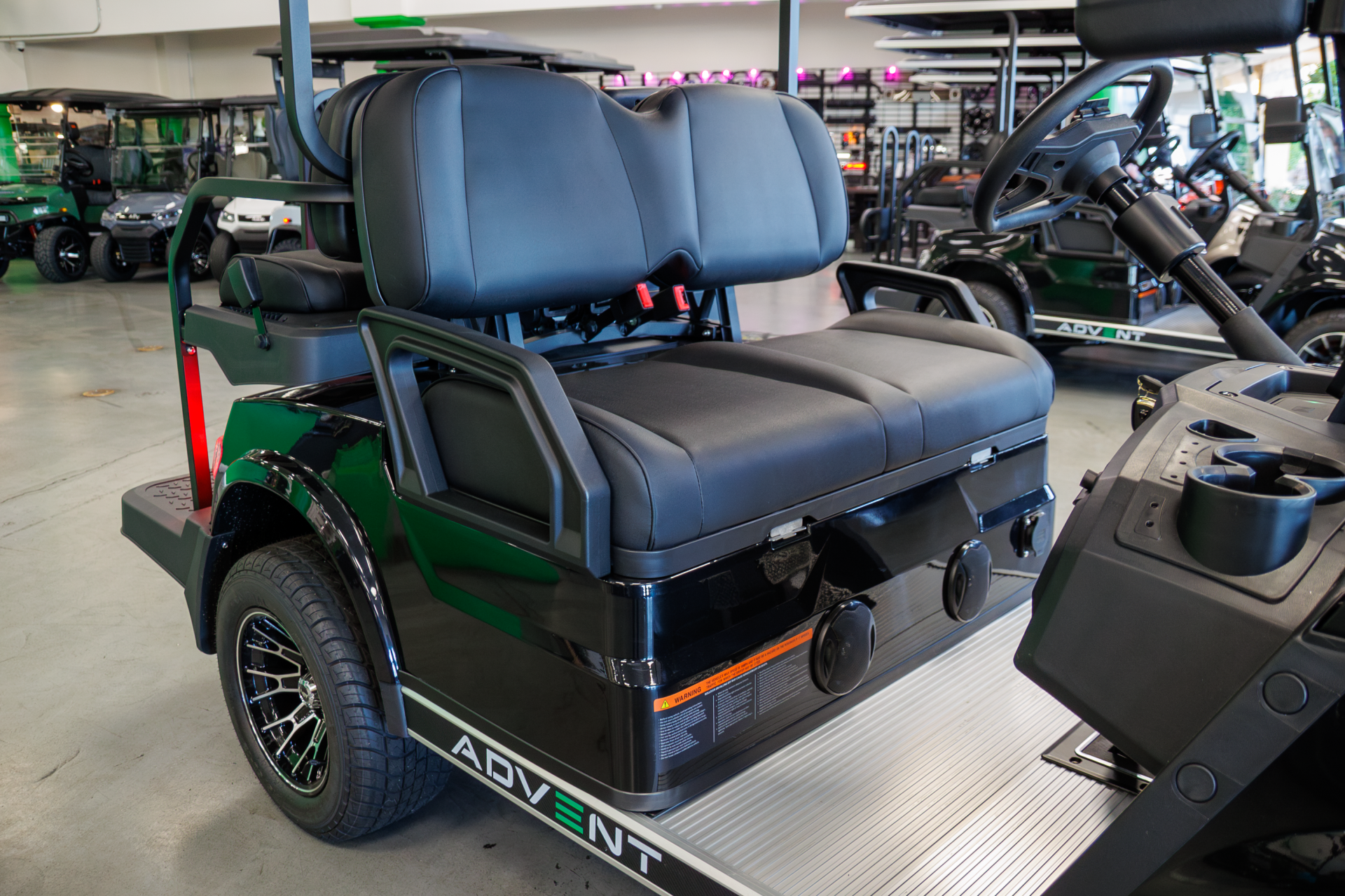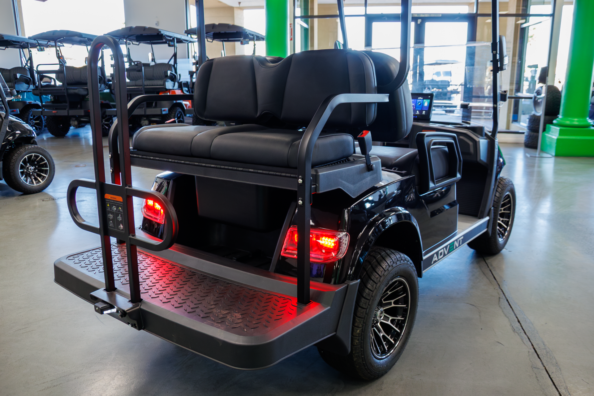 Designed for confidence and ease of use, the Advent 4 features four-wheel hydraulic disc brakes, independent front suspension, and bright LED lighting for enhanced visibility. Inside, premium details like custom-stitched leather seating, a Bluetooth touchscreen display, backup camera, and integrated sound system create a comfortable, modern driving experience, making it a practical and refined electric vehicle for moving more passengers with ease.