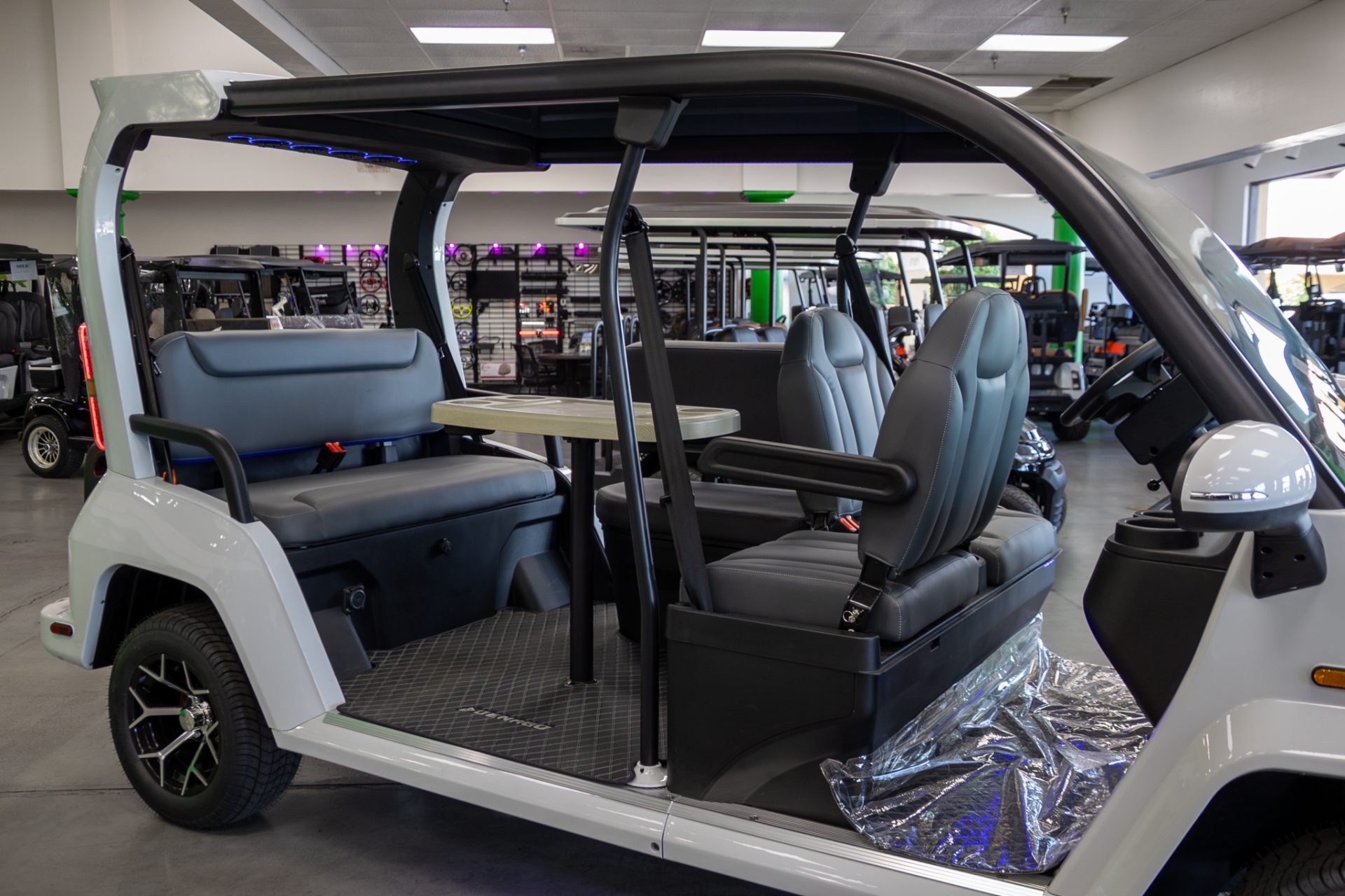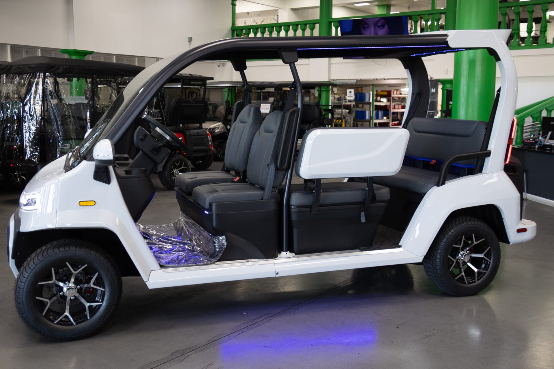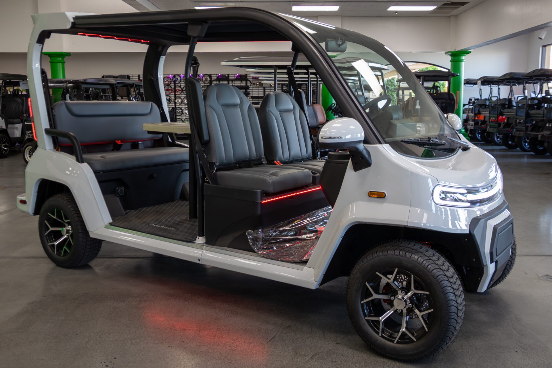 Built on a powder-coated carbon steel premium chassis, the City model combines durability with modern comfort. Inside, features like a 13-inch touchscreen display, electronic power steering, rear camera, and LED surround sound speakers create a refined, easy-to-drive experience. With seating for five and thoughtful upgrades like a moon roof and PivotSeat system, this electric vehicle blends practicality with everyday enjoyment.